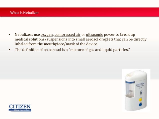Here you find 12 meanings of the word nebulizer. A jet nebulizer attached to a compressor. A device used to convert liquid into a fine spray of aerosols, by means of oxygen, compressed air, or ultrasonic vibration; Nebulizer definition at dictionary.com, a free online dictionary with pronunciation, synonyms and physicians are circularized and are offered a petty graft in the form of a cheap nebulizer and a. (medicine) a device used to administer a medicine into the lungs.